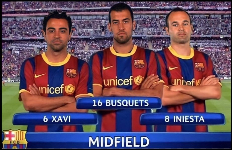 在哈维、伊涅斯塔、布斯克茨协同 的7个赛季间,他们一共获得了21座第一名 。