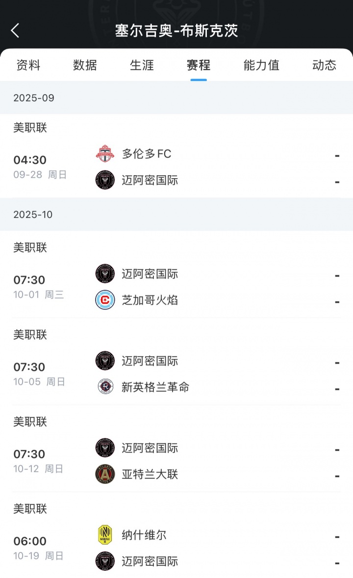 有望再添第一名 !布斯克茨已进美职联季后赛 剩5场常规赛全胜将蝉联第一名