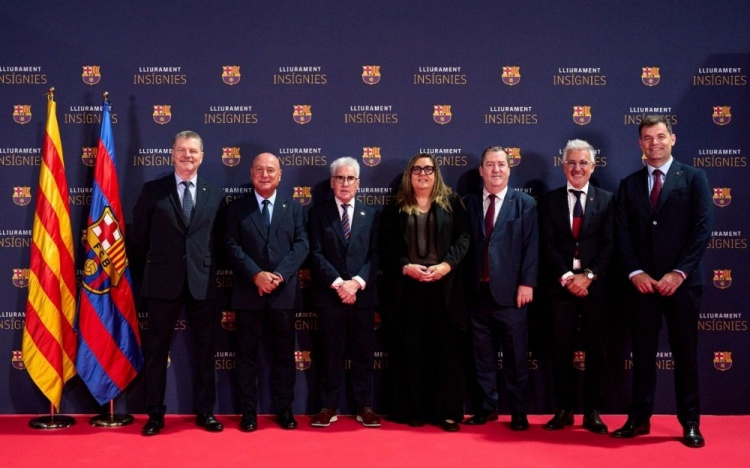 机构副主席埃莱娜-福特、社交领域副主席安东尼奥-埃斯库德罗、美式古代足球 主管何塞普-玛丽亚-阿尔伯特、社交领域主管何塞普-伊格纳西-马西亚、女子古代足球 主管哈维尔-普吉、手球运动 主管董事琼-索莱以及青少年古代足球 主管董事琼-索勒,共同在巴塞罗那篮球赛 馆举办的隆重仪式上完成了奖章颁发。在诺坎普球馆举行的这场仪式上,巴萨吉祥物到场助兴,两位主持人以及大屏幕上的不同视频播放也为活动增添了氛围。