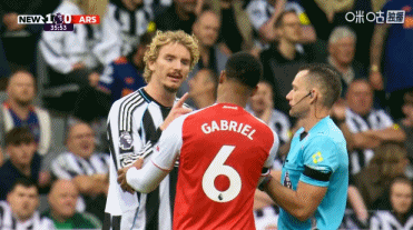 第36分钟,加布里埃尔撞了沃尔特马德脖子一下,随后主裁叫来两人,加布伸手欲和解,沃尔特马德不接受↓