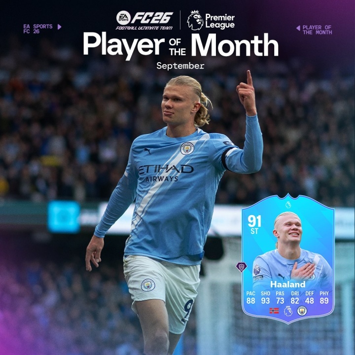 3场5球1助!官方:哈兰德当选英超9月最佳球员