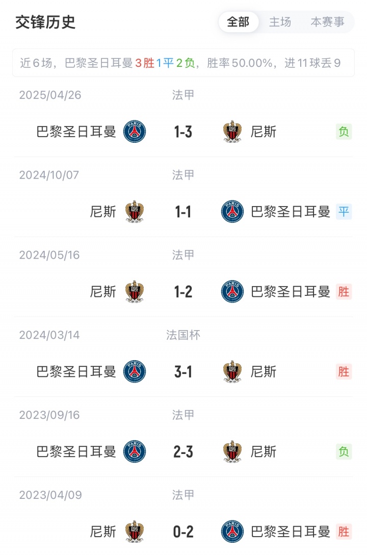 巴黎职业联赛 6胜3平1负积21分领跑法甲积分榜,苏超直播在线观看各项赛事连续7场不败;尼斯职业联赛 5胜2平3负积17分暂位法甲第8,近5轮不败。巴黎对阵尼斯已连续2场不胜(1平1负)。